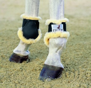 Oblíbené skokové chrániče s výliskem a podložením z pravé ovčí kožešiny - ideální pro choulostivé koně se sklonem k odírání se. Lze prát s použitím speciálního přípravku.